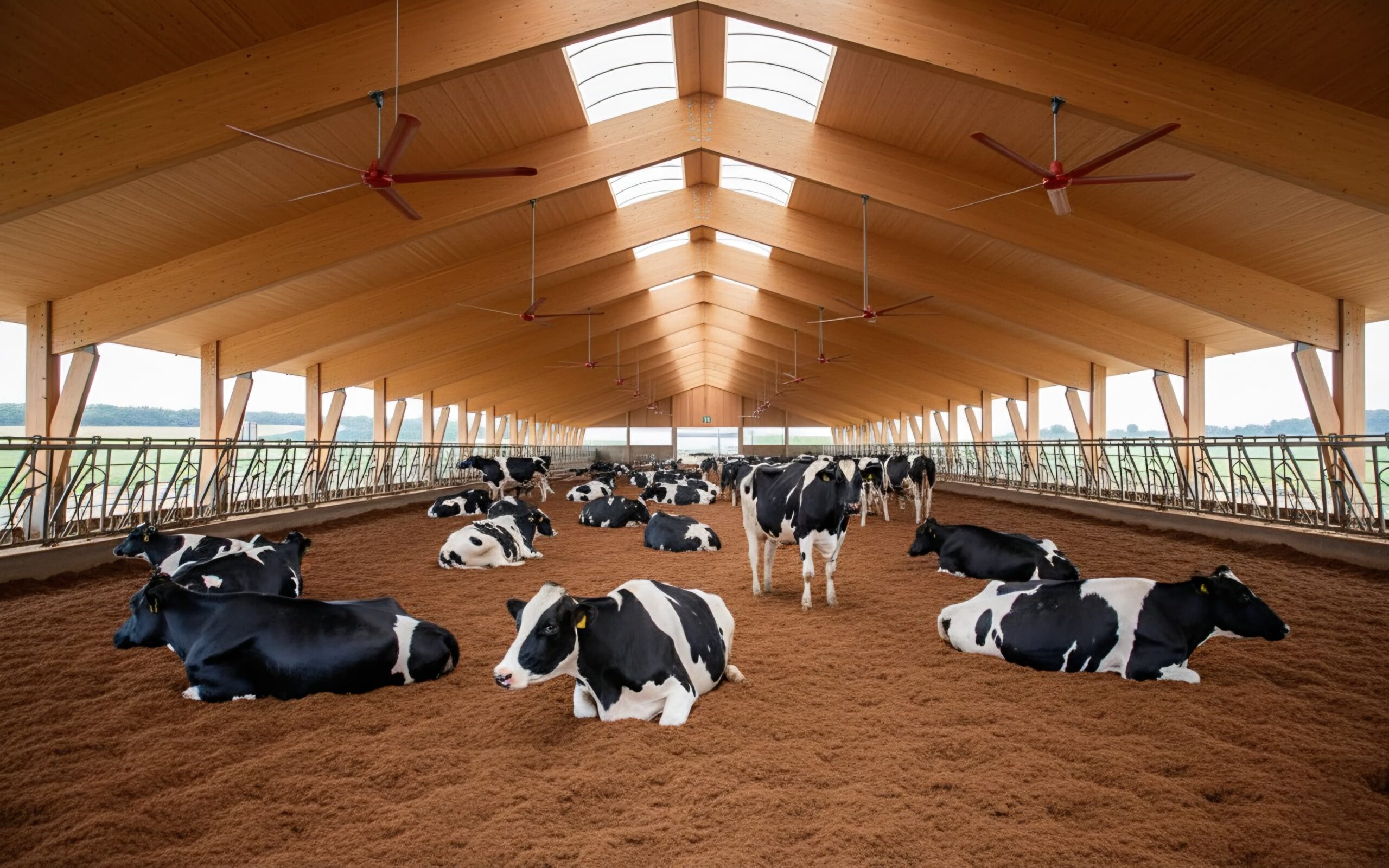 • Zona di riposo a lettiera permanente (compost barn), con 18-20 m² per capo.